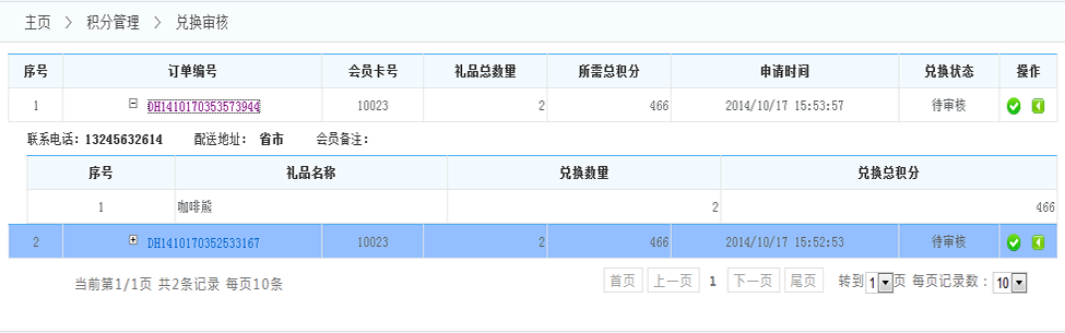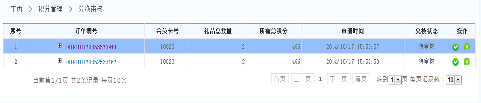 2.通過審核:點擊通過審核后,會員將得到禮品 將會扣減會員積分