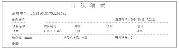 如果有勾選打印小票,則在點(diǎn)擊結(jié)算消費(fèi)成功后,將會打印出此次計(jì)次消費(fèi)的詳細(xì)信息;